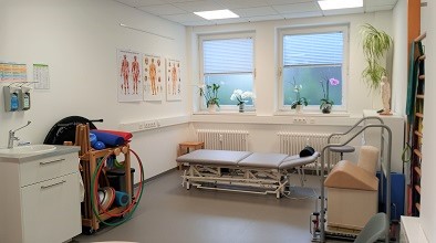 Die Praxis im Ärztehaus Mürwik. Sie besteht aus einem Empfangsbereich und mehreren Behandlungsräumen. Unsere Praxisräume sind funktionell und trotzdem gemütlich gestaltet und eingerichtet, so fühlen sich unsere Patienten und auch wir Therapeutinnen stets wohl |
